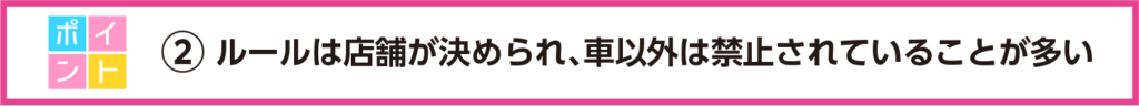 こうした安全面の配慮から、ドライブスルーの利用において、車以外を禁止としている店舗が多いようです。