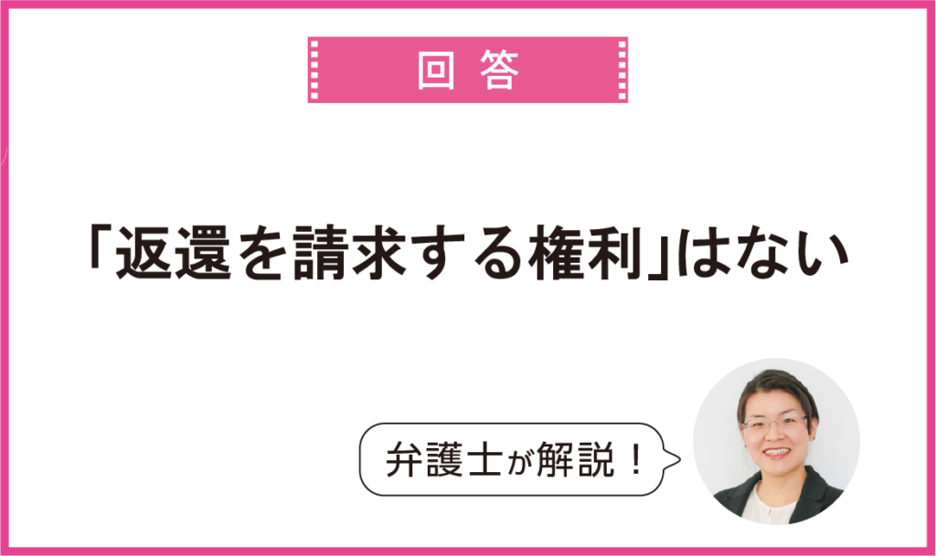 ただし、法的に返還を請求できる権利はなくても、話し合いによって返還に合意してもらえることはあるかもしれません。
