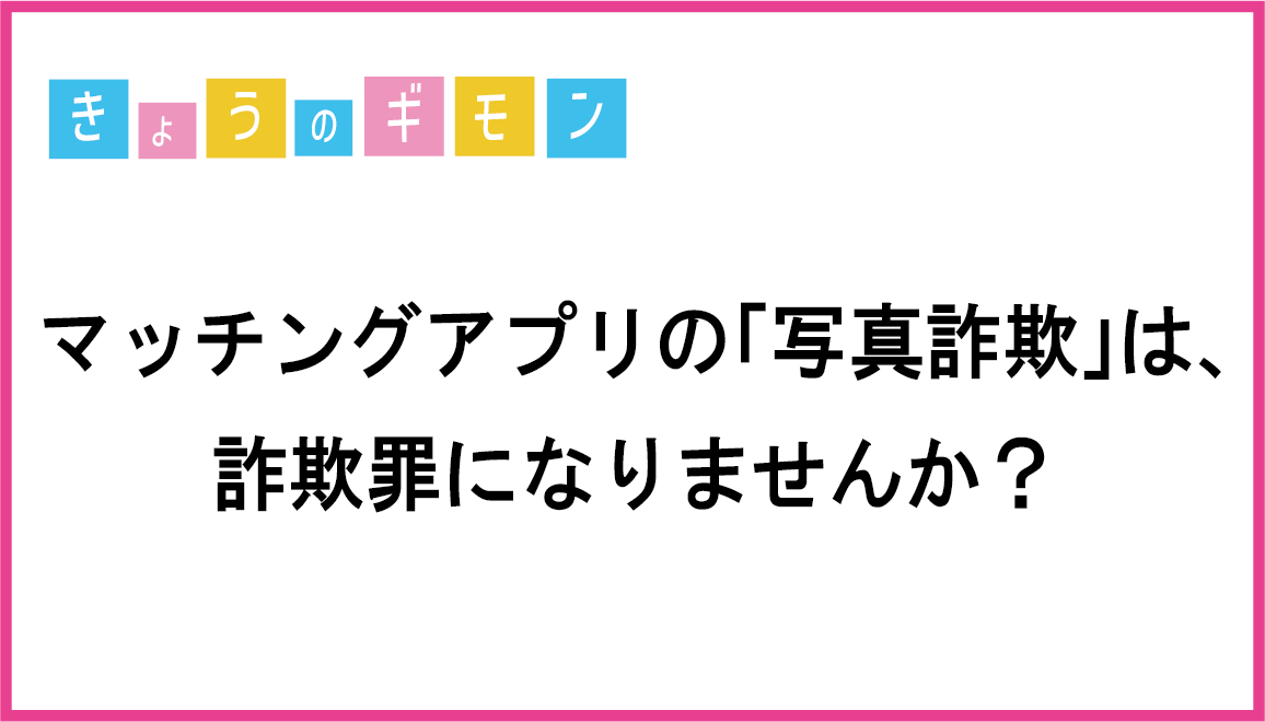 • 【きょうのギモン】マッチングアプリの「写真詐欺」は、詐欺罪になりませんか?