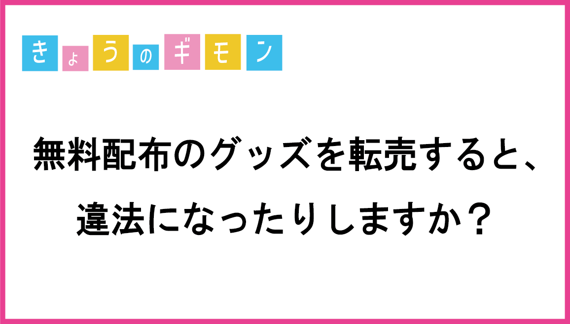 • 【きょうのギモン】無料配布のグッズを転売すると、違法になったりしますか?