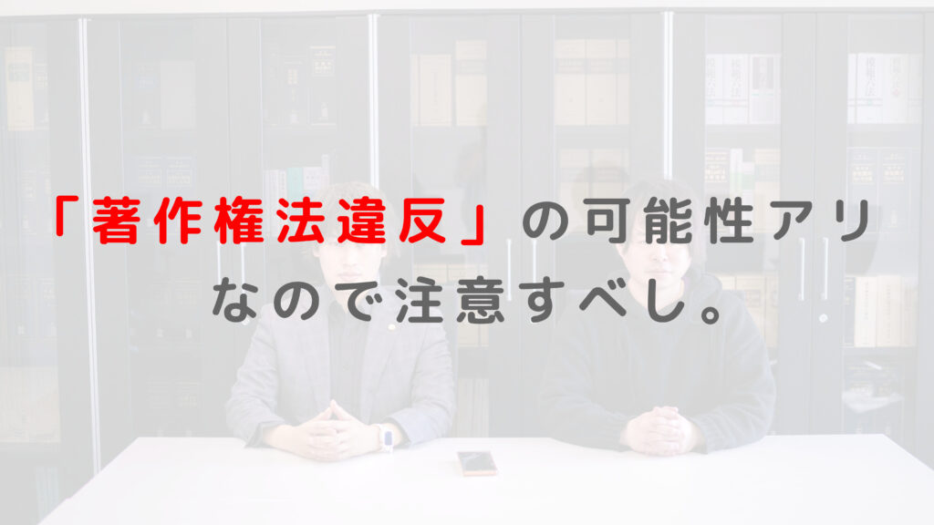 著作権者の許諾がなければ、このような動画はもちろん、テレビ映像を撮影した画像でも「著作権法違反」にあたるため注意が必要です。