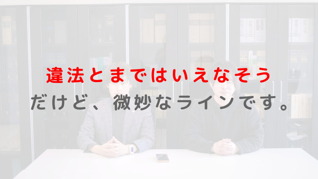 よくはわかっていませんが、なんとなく法律違反が蔓延っているような気がします。(そんな話もよく聞きますし)